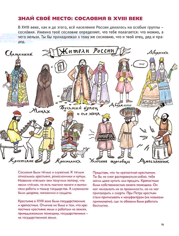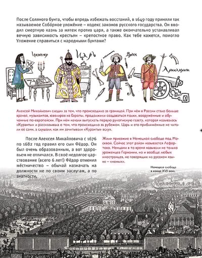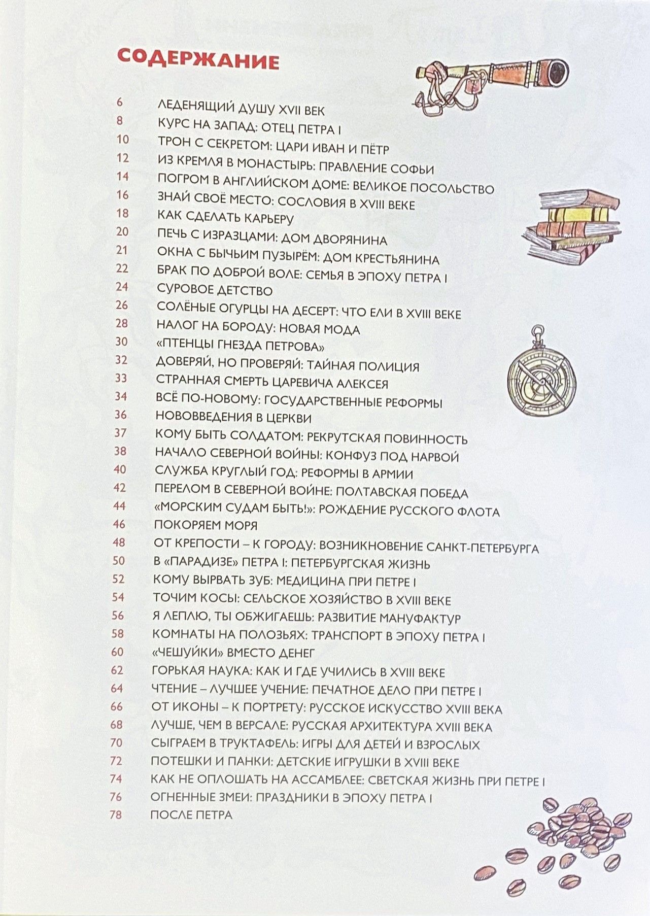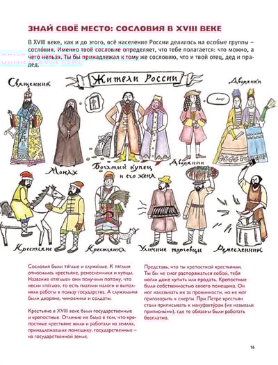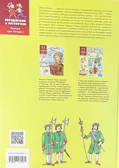 The era of Peter the Great is one of the most important, turning points in the history of the Russian state. Readers will visit Russia in the late 17th - early 18th centuries, learn about the victories of the Russian fleet and army, how St. Petersburg was founded and when the New Year was celebrated. The original children's encyclopedia will tell not only about the key events of the era, but also about the daily life of children and their parents. Where to go to study? Why do they give pickles for dessert? What toy will never break? Why do they dress boys in dresses? Answers to these and many other questions about noble and peasant life await children on the pages of our encyclopedia. This unique publication on the history of Russia will become a real guide to the exciting world of the past for young readers. For primary school age.