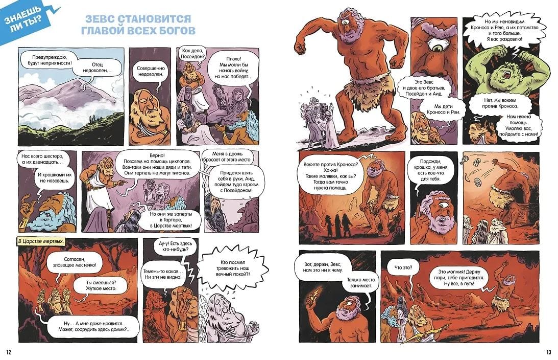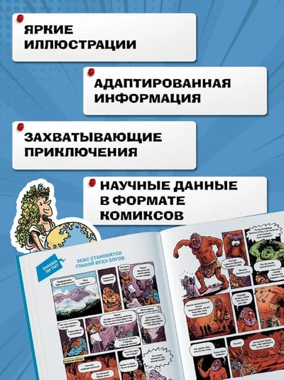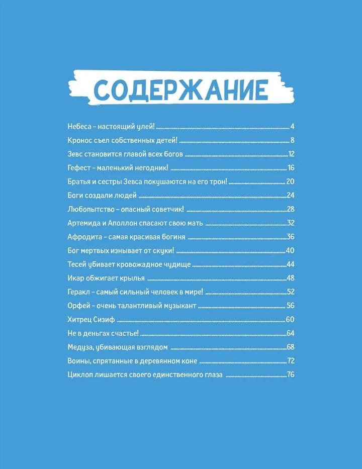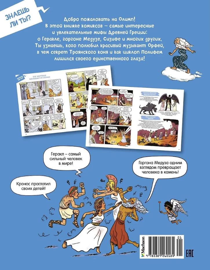 Welcome to Olympus! This comic book contains the most interesting and fascinating myths of Ancient Greece: about Hercules, the Gorgon Medusa, Sisyphus and many others. You will find out who the handsome musician Orpheus fell in love with, what is the secret of the Trojan Horse and how the Cyclops lost his only eye!