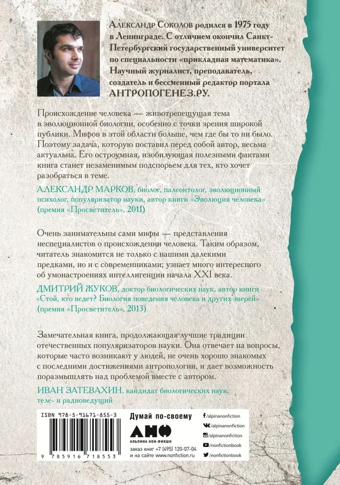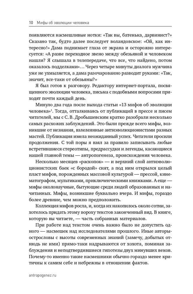 Did Charles Darwin renounce his theory of human evolution at the end of his life? Did ancient people live to see dinosaurs? Is it true that Russia is the cradle of humanity, and who is the Yeti - perhaps one of our ancestors, lost in the centuries? Although paleoanthropology - the science of human evolution - is experiencing a rapid boom, the origin of man is still surrounded by many myths. These include anti-evolutionary theories, legends generated by popular culture, and pseudo-scientific ideas that are common among educated and well-read people. Do you want to know how everything was "in reality"?