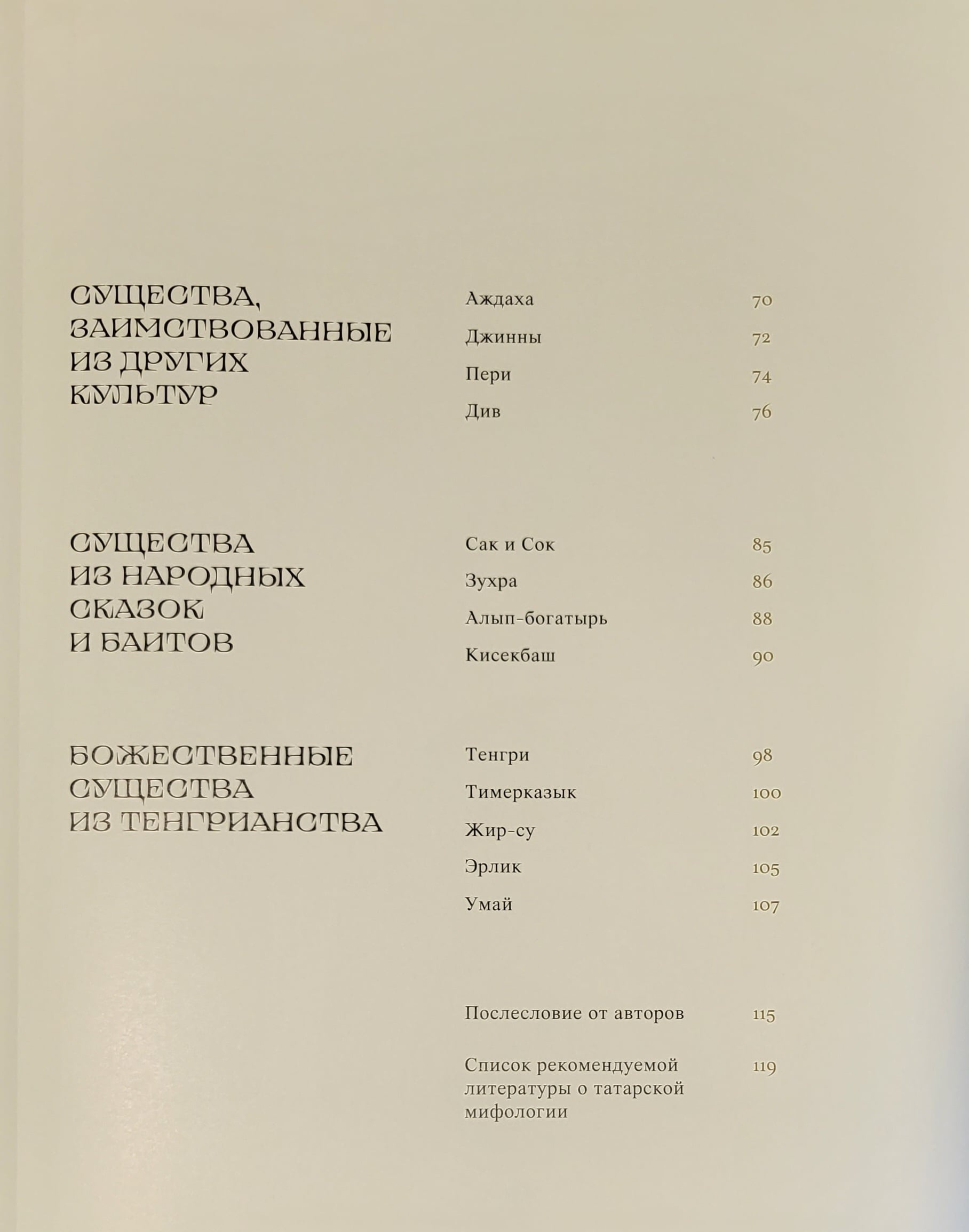 Tatar mythology is full of amazing creatures. This book introduces 30 authentic characters that strike the imagination, from Su Anasa, the mother of water, brushing her long hair on the shore of a lake, to the winged horse tulpar. They are accompanied by medieval legends and poems about Tatar deities and spirits who live in the human world and follow them everywhere.