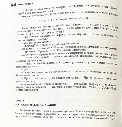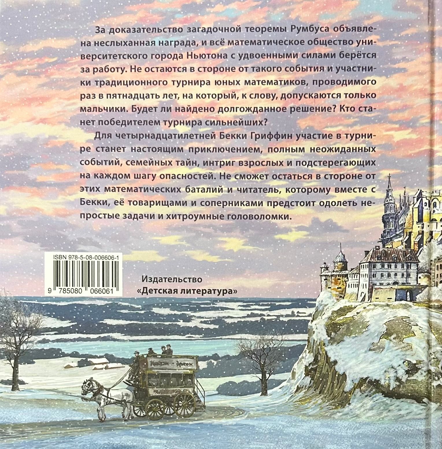 Can you imagine math as an adventure full of unexpected events, family secrets, and dangers at every turn? But that's exactly what awaits fourteen-year-old Becky Griffin, who finds herself in the university town of Newton. Since childhood, fascinated by mathematics, she manages to get to a tournament in which only boys can participate, and finds herself in a whirlwind of serious mathematical duels and intrigue of adults.