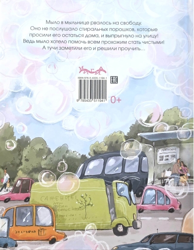 The soap in the soap dish was bursting for freedom. It ignored the laundry detergents that begged it to stay home and leaped out into the street! After all, the soap wanted to help everyone passing by get clean! But the clouds noticed it and decided to teach it a lesson…