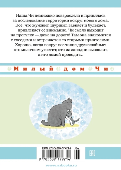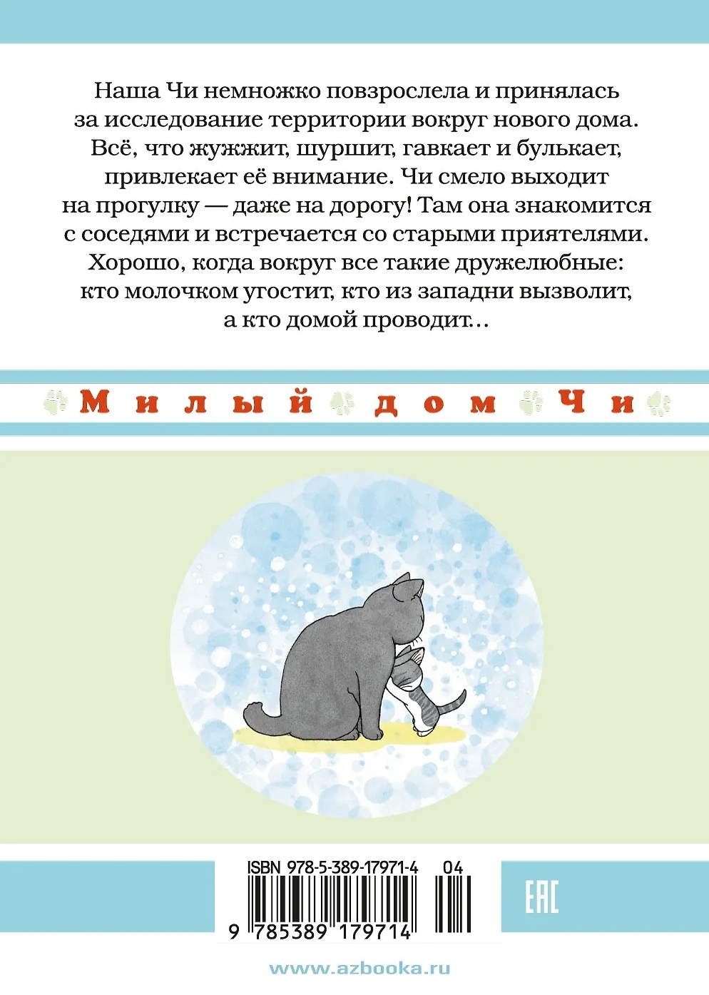Our Chi has matured a bit and is exploring the area around her new home. Anything that buzzes, rustles, barks, or gurgles attracts her attention. Chi boldly ventures out for walks—even onto the road! There, she meets the neighbors and reunites with old friends. It's so nice when everyone is so friendly: someone will offer you a treat, someone will rescue you from a trap, and someone will walk you home...