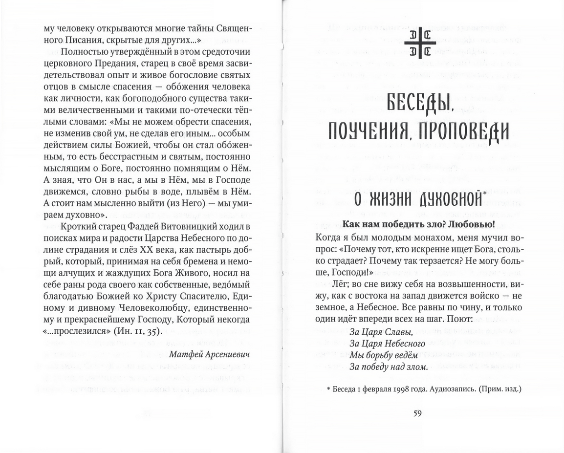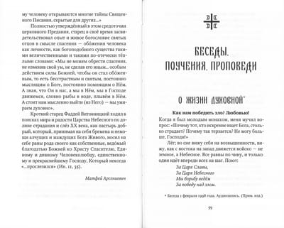 This book is the fruit of the collective labor and love of many spiritual children of the Serbian ascetic and spiritual father, Father Thaddeus Vitovnicki, one of the most spiritual elders of the 20th century, who labored in the Vitovnica Monastery in honor of the Dormition of the Mother of God. The book is presented as a collection of sermons, instructions and conversations with the elder, and his biography is also given here.