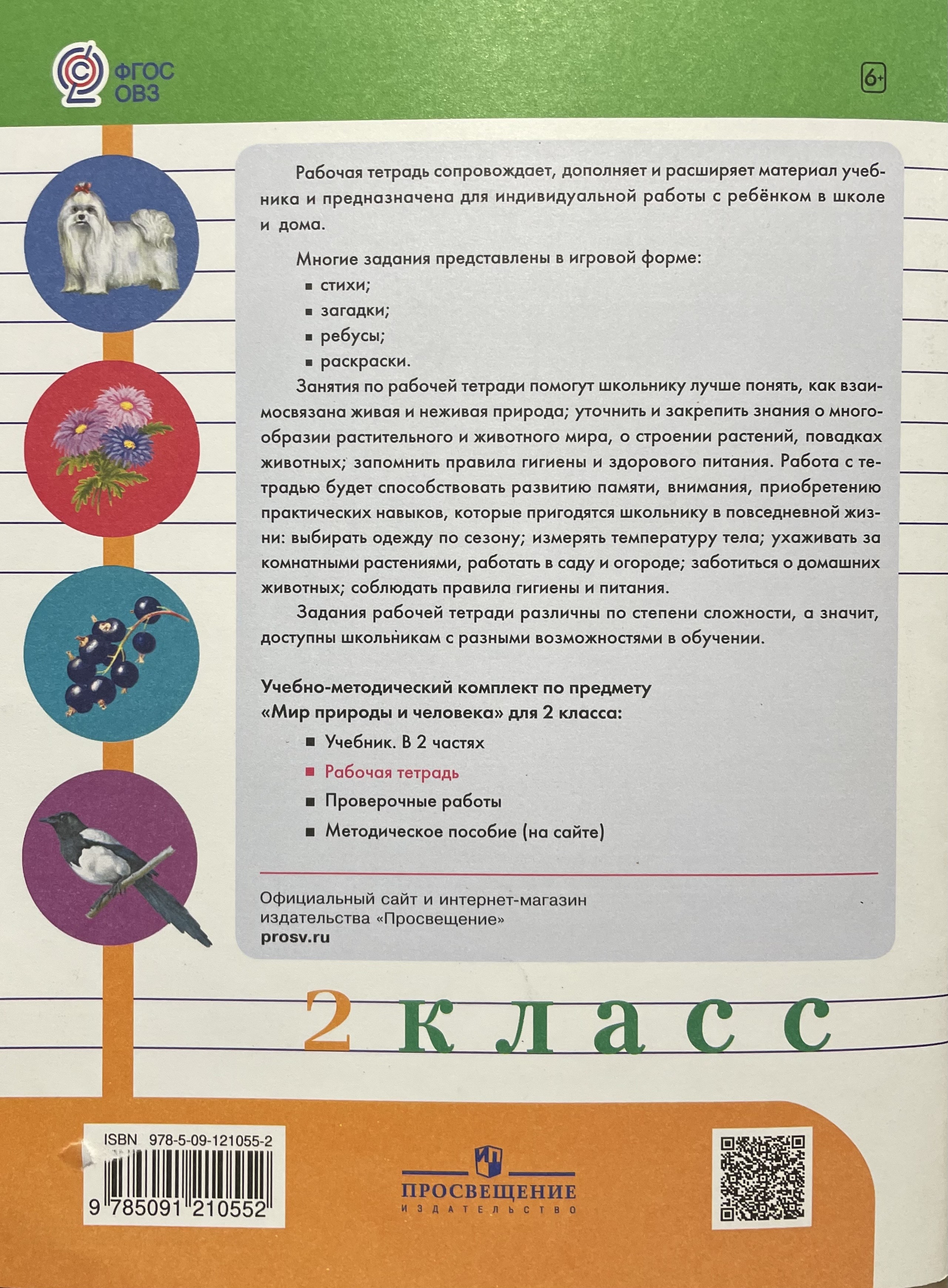 This workbook is part of the "World of Nature and Man" educational and methodological kit for children with disabilities. Its contents correspond to the sections of the second-grade textbook and are aimed at reinforcing the knowledge acquired in class. The workbook can be used both independently and under the teacher's guidance. Each section includes questions on the material covered in the textbook and tasks that facilitate the application and use of acquired knowledge in new contexts. Thus, working with this workbook will help develop memory and attention, and train students in both independent and guided work. Particular attention is paid to reinforcing concepts of the relationship between animate and inanimate phenomena, the dependence of living things on changes occurring in inanimate nature, adaptation to these changes, and human activity in nature.