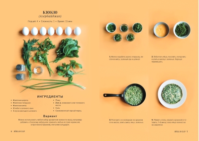 - bright illustrations of ingredients and step-by-step cooking instructions.