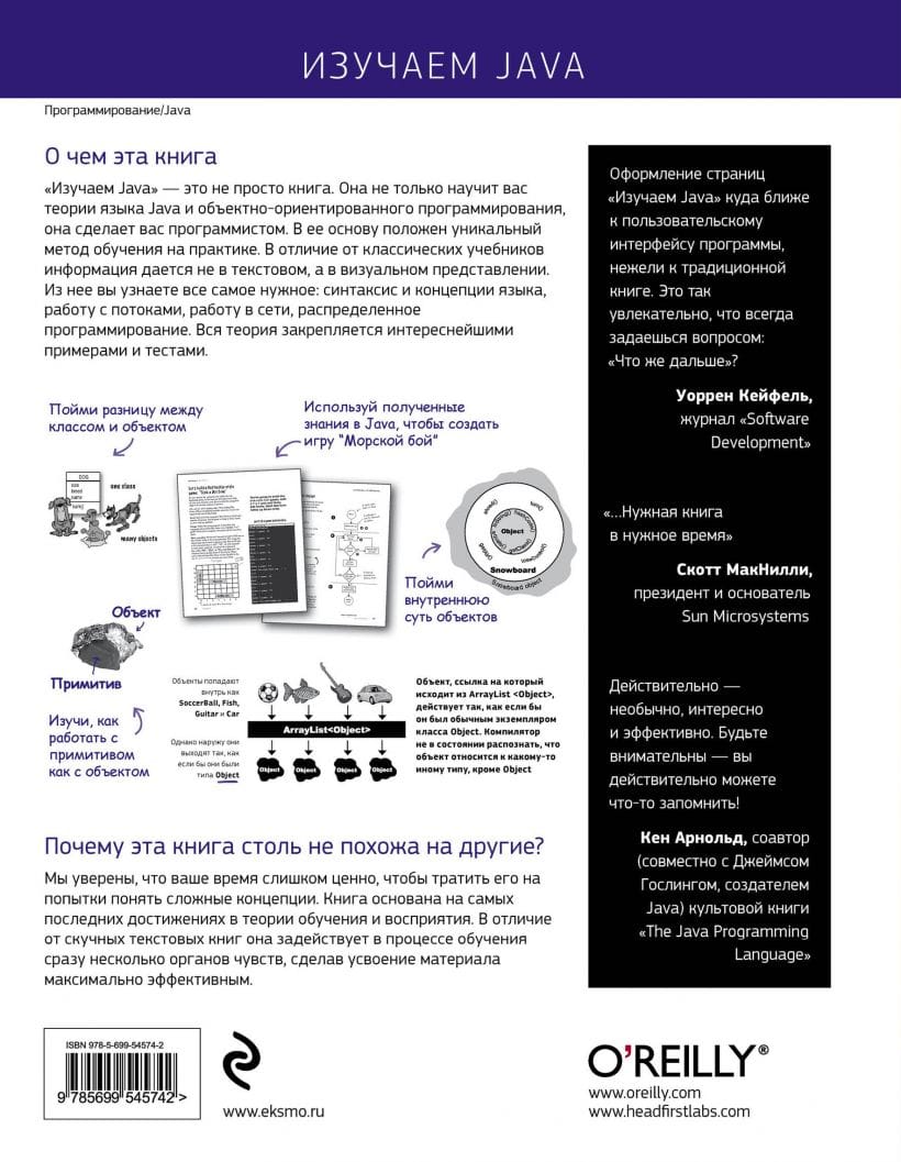 "Learning Java" is not just a book. It will not only teach you the theory of Java and object-oriented programming, it will make you a programmer. It is based on a unique method of learning by doing. Unlike classical textbooks, the information is given not in text, but in visual representation. You will learn everything you need: syntax and language concepts, working with threads, networking, distributed programming. All theory is reinforced with interesting examples and tests.