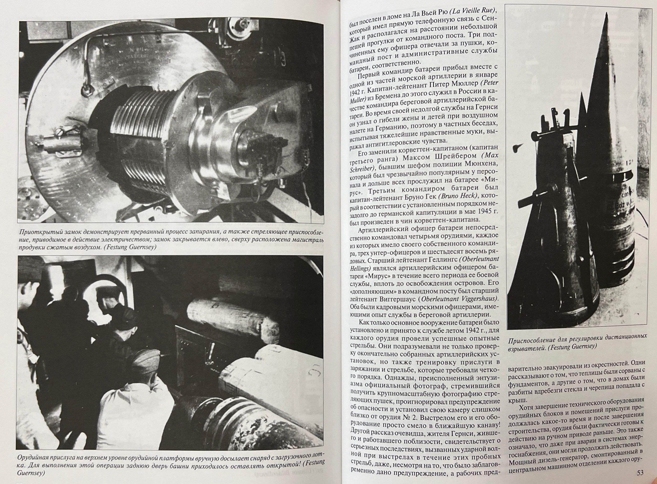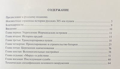 The book tells about the history of creation, combat operations and subsequent fate of one of the batteries of the famous Atlantic rampart, located on the English island of Guernsey occupied by the Germans in 1940-1945 and armed with Russian 305-mm cannons in 52 caliber length from the former line ship of the Black Sea Fleet "Emperor Alexander III" (later "Volya" and then - "General Alekseev"). The cannons, which went to France after the Civil War, were given to the Finns in 1940 and were captured by the Germans during transportation. The construction of the original tower-like artillery installations of the battery and its fortifications created by Krupp engineers are described in detail.