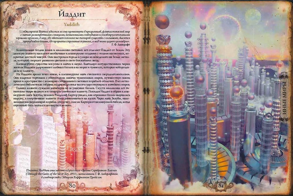 The second part of the unique project "The Worlds of Howard Phillips Lovecraft" - a bold attempt by Russian-speaking researchers to systematize and present to the public a layer of information about the unimaginable creations of the rich imagination of the famous visionary. In this book, which is a detailed, richly illustrated album guide, writers, editors, artists and experts on the work of Lovecraft and his followers tell and show locations and artifacts, other worlds and forbidden works that make up a significant part of the "Lovecraft universe" and the so-called Cthulhu Mythos. The unknown Cadat and Juggot, Arkham and Dunwich, Innsmouth and Providence, the Ridges of Madness and R'lyeh, the Silver Key and the Tiara of the Deep, the "Cults of the Ghouls", the "King in Yellow" and, of course, the "Necronomicon" - about all this and much more, with titles, names, works and authors. For anyone interested in the "Cthulhu Mythos" and daring to delve deeper into the abysses of Cosmic Horror than ever before!