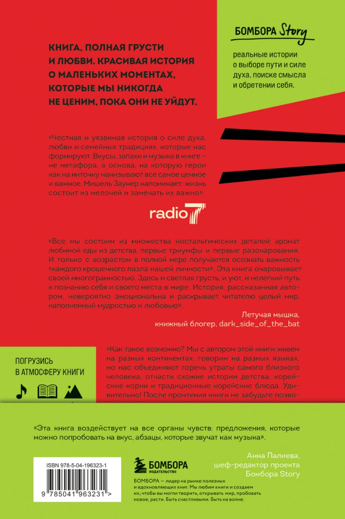 When Michelle was twenty-five, her mom was gone. And more than anything else in the world she wanted to become a little girl again, to have her mother fix her bangs, smooth out the wrinkle between her eyebrows, make a remark on her posture... Trying to cope with grief, Michelle learns to cook her favorite dishes from her childhood. Twenjang tighe soup and jjatjuk porridge, fermented kimchi cabbage and pickled galbi ribs - these flavors help Michelle come to terms with her loss, feel her mother's love again, and find herself.