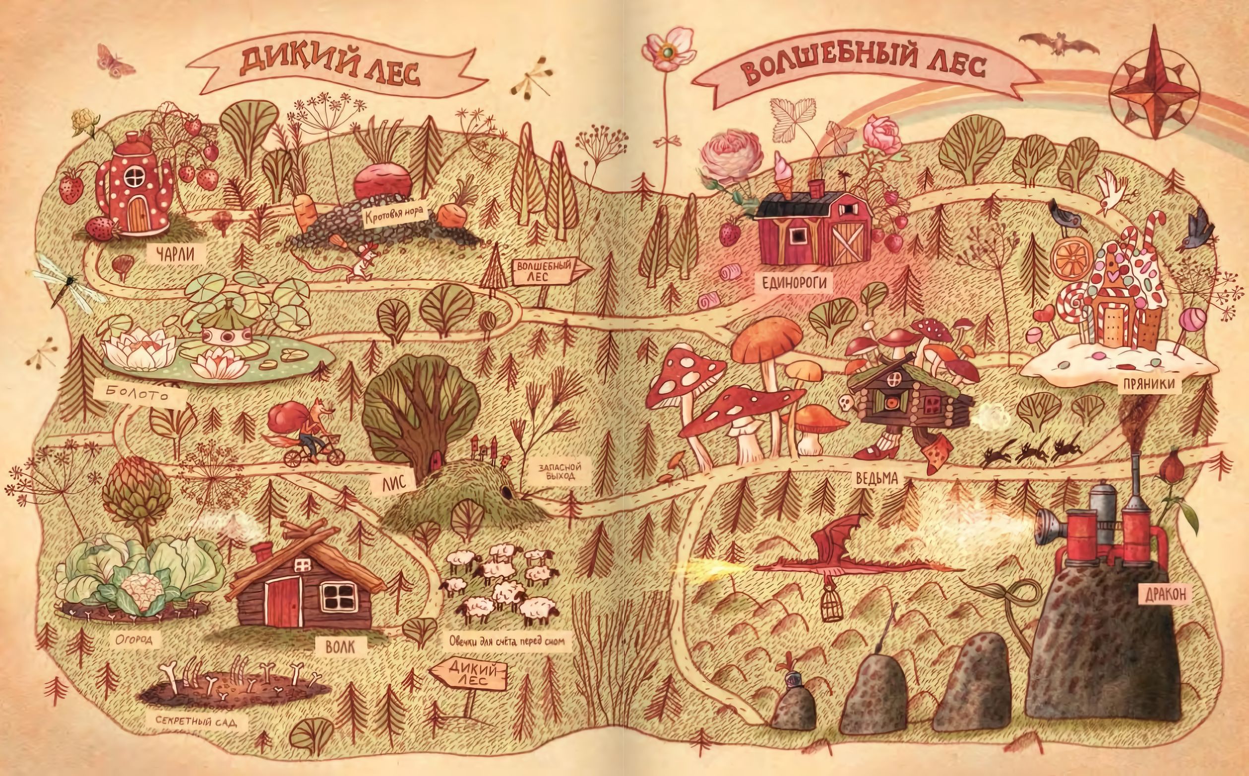 The dark labyrinths of the mole hole, the wayward hut of Madame Witch, the sugar stables of the unicorns, Mr. Dragon's lair, the fragrant gingerbread house — everything will need to be tidied up. Charlie has a busy work week ahead!