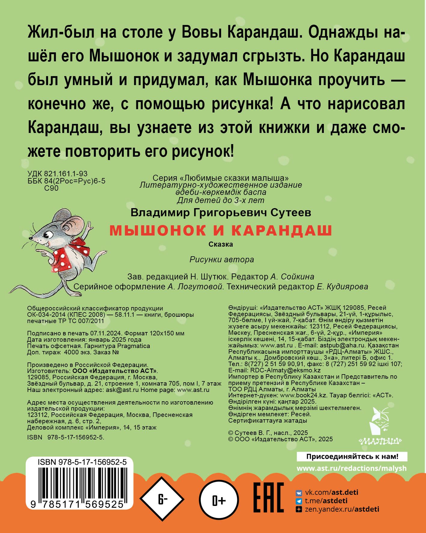 Once upon a time, Vova had a Pencil on his desk. One day, a Mouse found it and wanted to chew it up. But the Pencil was smart and figured out how to teach the Mouse a lesson – with a drawing, of course! And what the Pencil drew, you will learn from this book and you will even be able to repeat his drawing!