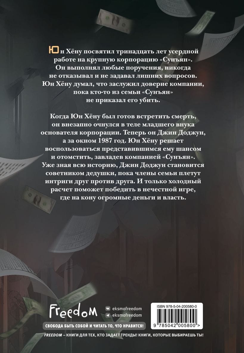 When Yoon Hyun was about to die, he suddenly woke up in the body of the founder’s youngest grandson. Now he's Jean Dojun, and it's 1987 outside. Yoon Hyun decides to take his chance and take revenge by taking over the Sunyang company. Knowing the whole story, Jean Dojun becomes his grandfather’s advisor while family members plot against each other. And only cold calculation will help to win in a dishonest game, where huge money and power are at stake.