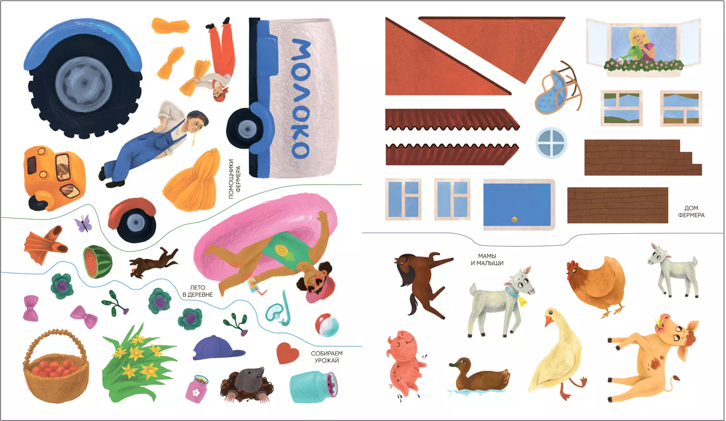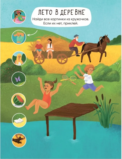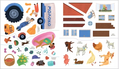 The book "In the Village" from the series "Reusable Stickers" will introduce your child to domestic animals, village equipment and fun vacation in nature on a bright summer day. In the book, the child is waiting for 5 types of interesting and understandable tasks that he can perform independently. Such tasks will help in the development of logic, attentiveness, creative thinking, fine motor skills.