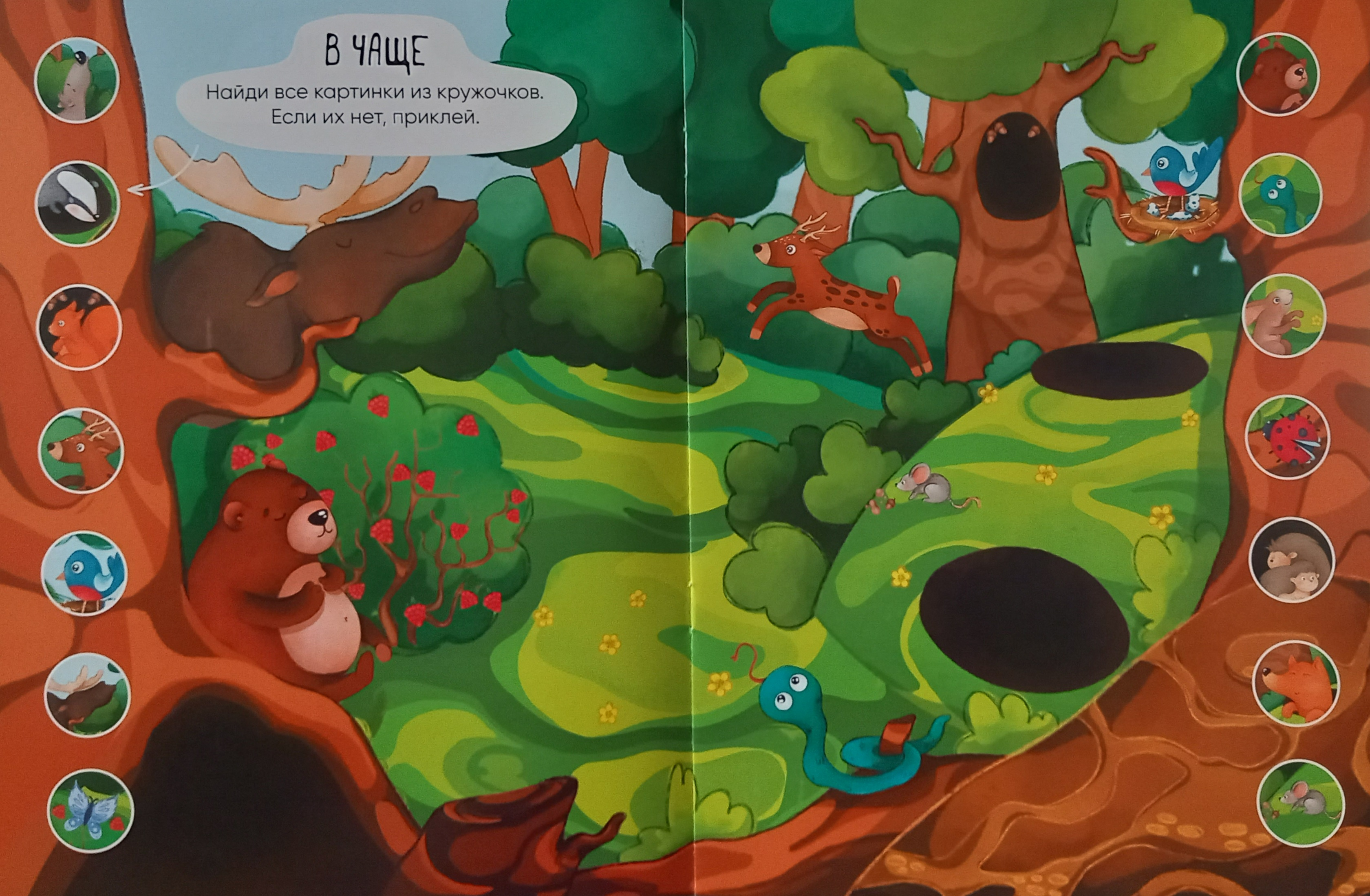 The book "In the Forest" from the "Reusable Stickers" series will take your child on a journey through paths and clearings, allowing them to get to know the forest creatures better. The book features five types of engaging and easy-to-understand tasks that they can complete independently. These tasks will help develop logic, attentiveness, creative thinking, and fine motor skills.