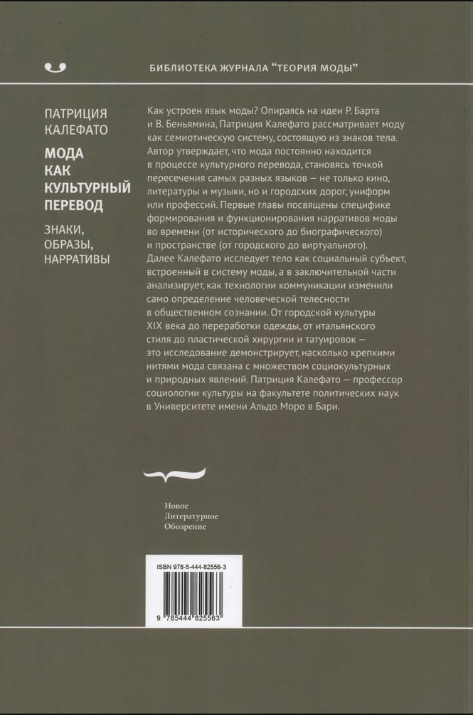How does the language of fashion work? Drawing on the ideas of R. Barthes and W. Benjamin, Patricia Calefato examines fashion as a semiotic system made up of bodily signs. The author argues that fashion is constantly in the process of cultural translation, becoming a point of intersection of various languages - not only cinema, literature and music, but also city roads, uniforms and professions.