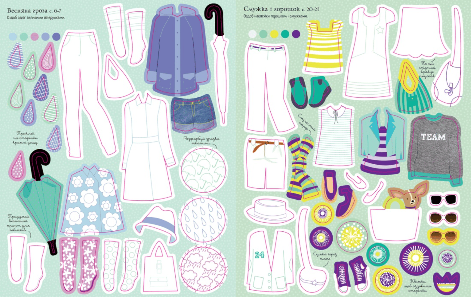 Become a fashion designer and create your own collection! In this book you will find colored stickers, fabric and pattern samples, and stickers for coloring. Create stylish images, fantasize, and bring your most interesting ideas to life! Read and play! Develop attention, imagination, fine motor skills, and artistic taste.