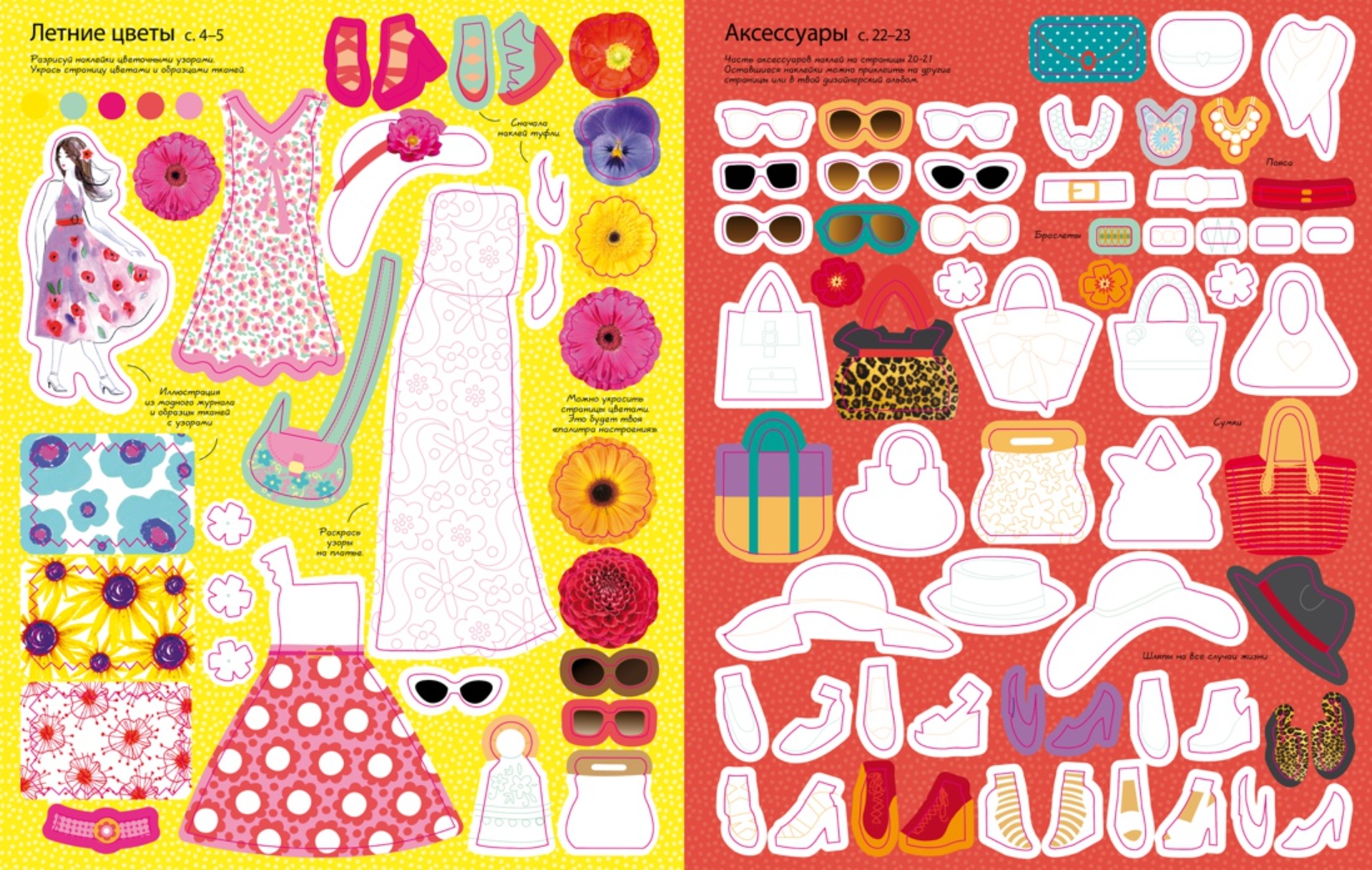 With this book you will feel like a real fashion designer. Choose outfits and accessories for the models, combine different colors and patterns, color the stickers. Create your own bright and unforgettable summer collection. Read and play! Develop attention, imagination, fine motor skills and artistic taste. For children under 3 years old. Contains small parts. Use under the direct supervision of adults.
