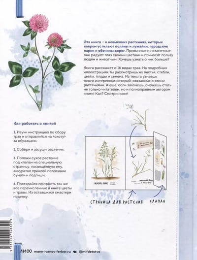 The texts are written by a scientist-biologist, and realistic watercolor illustrations will open the world of plants, teach the reader to be attentive to nature and sincerely admire its beauty. The book explains how to properly collect and dry plants for herbarium, there are ideas for crafts from flowers and leaves, information about the types and structure of herbs and flowers, a description of their importance to nature and man.