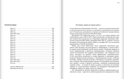The diaries contain a harsh chronicle of life in the besieged city, a later exposure of the "official lie about the siege," and entries about the dramatic post-war life. They are extremely frank, full of bitterness and pain. Among the contemporaries about whom O.F. Berggolts writes are M.I. Aliger, L. Aragon, A.A. Akhmatova, Yu.P. German, D.S. Danin, and A.T. Tvardovsky, D.D. Shostakovich, and others. The edition includes commentary and introductory articles.
