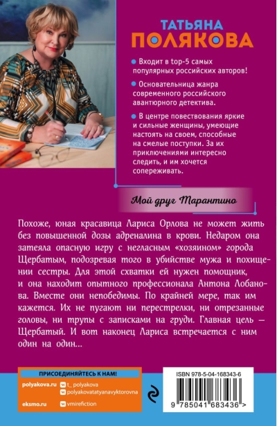 It seems that the young beauty Larissa Orlova can not live without an increased dose of adrenaline in the blood. Not without reason she has started a dangerous game with the unspoken "master" of the city Shcherbatym, suspecting him of murdering her husband and kidnapping her sister. For this fight she needs an assistant, and she finds an experienced professional Anton Lobanov. Together they are invincible. At least, so it seems to them. They are not frightened by neither shootouts, nor severed heads, nor corpses with notes on their chests. The main goal is Shcherbatoy. And now, finally, Larissa meets him one on one....