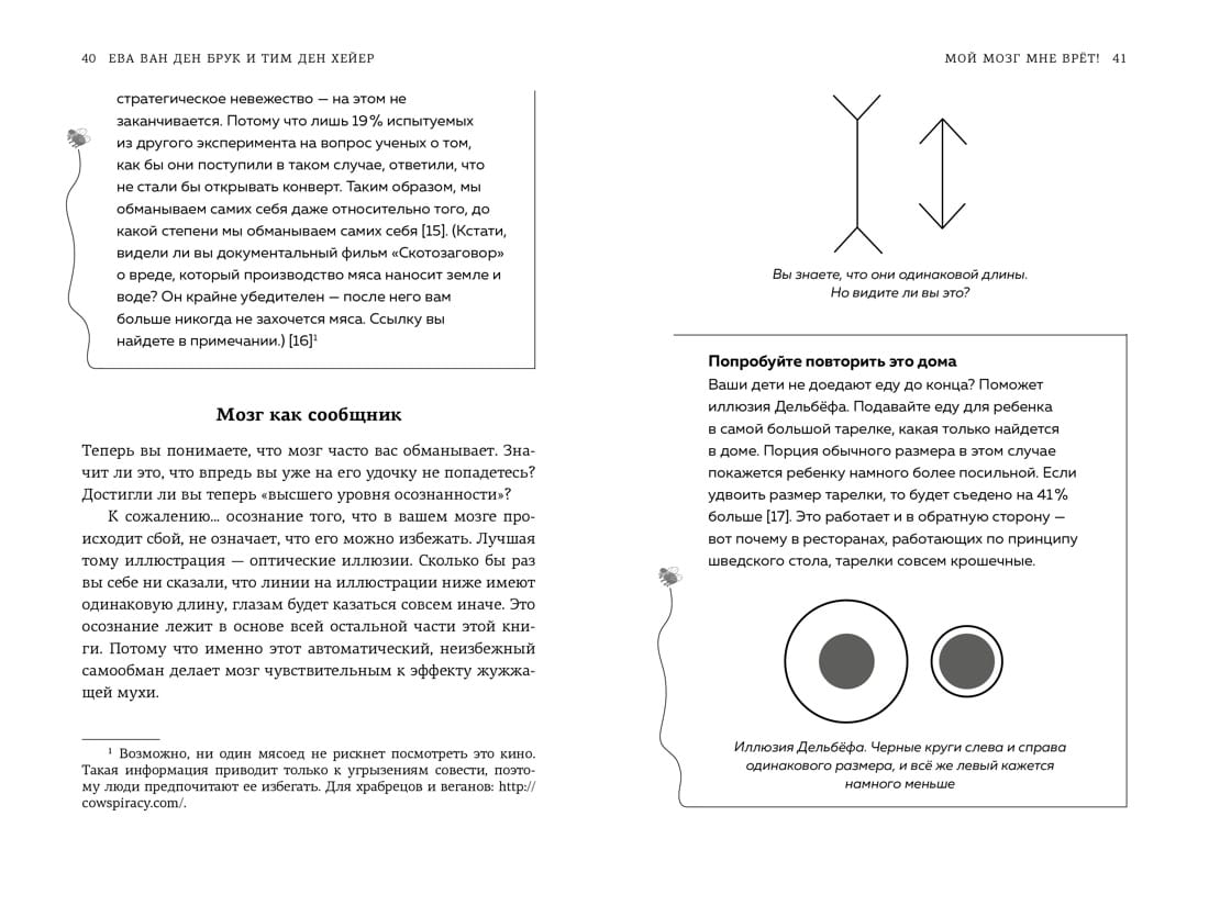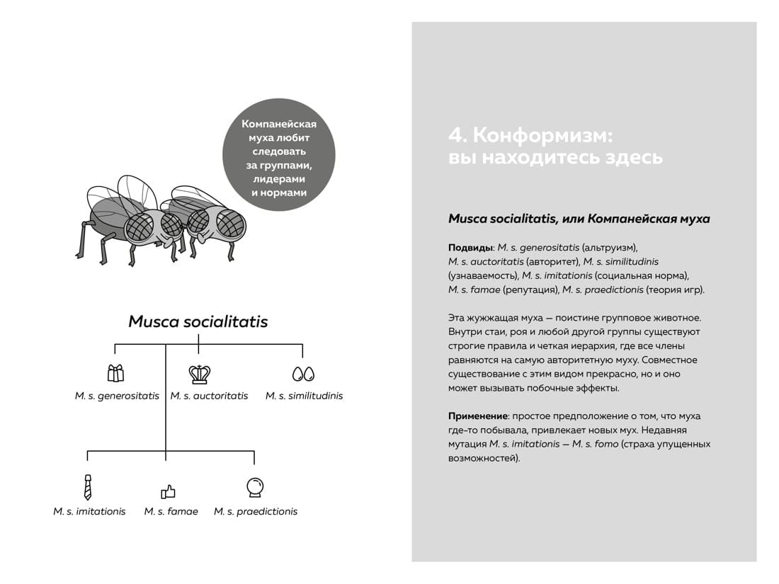 The guide on this entertaining journey is a very ordinary... a buzzing fly! The authors refer to the buzz fly effect as the various cognitive distortions and thinking errors that make us afraid to step out of our comfort zone, make the same mistakes under stress, and crave so much to fit into social norms. The buzzing fly will catch up with you anywhere, from a Michelin restaurant to a notary's office. Like the real fly, there is nowhere to hide from it. Moreover, its effects are often used by marketers, politicians, economists and many others, even if you don't notice it. Using concrete examples from life and statistical data, the authors will tell you how to recognize the effects of the buzzing fly in everyday life, to avoid their negative consequences, to cope with temptations and prejudices. This book will hand you a fly swatter and teach you not only how to make the right decisions and assess the environment sensibly, but even how to use thinking errors for good.