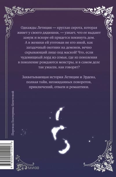 Leticia is an orphan who lives with her uncle and is forced to leave home when she learns that she is to be married off. She is destined to be married to a mysterious demon hunter who is always hiding his face under a mask. But after the engagement, the newly engaged groom leaves... for seven years. What is Leticia really hiding? Can she become the rightful mistress of the castle? And will she be able to protect her new home while the mysterious lord is so far away?