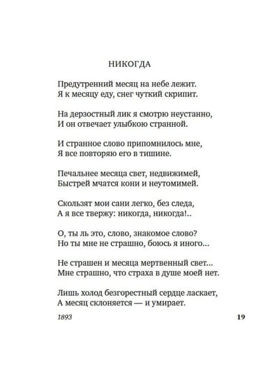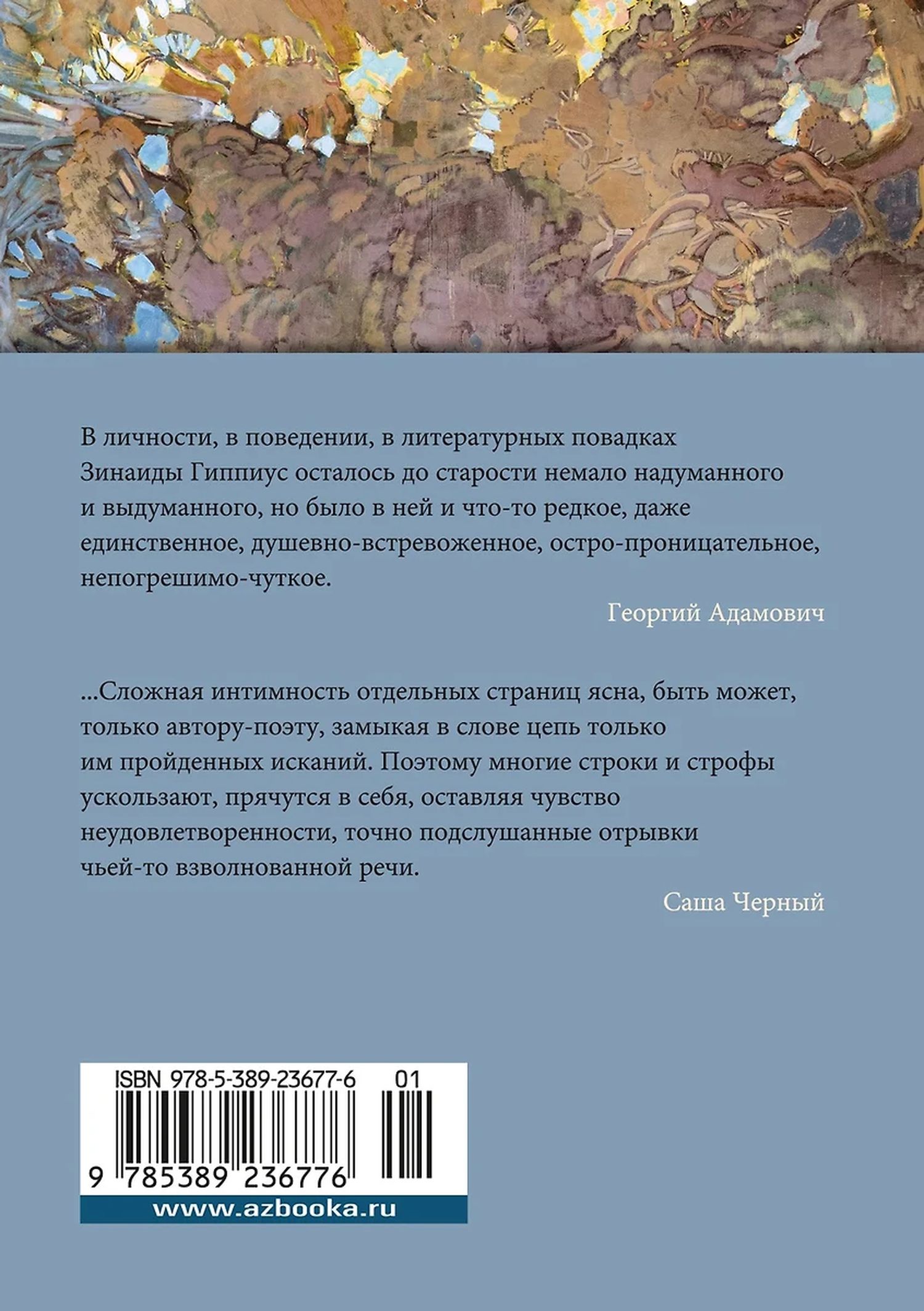 Zinaida Nikolayevna Gippius (1869-1945), the extravagant beauty of the Silver Age, is most often remembered together with her famous husband, Dmitry Merezhkovsky. In many ways, they are indeed inseparable. The spouses complemented, inspired and provoked each other in life and work. However, it would be a great mistake to perceive Gippius only as a muse in this union. In the literary circles of Russia in the early XX century Zinaida Nikolaevna played a very important and independent role: she actively published prose, journalism, acted as a critic. Poems she wrote, by her own admission, "only when she could not help writing", so they can be considered as a kind of poetic diary, capturing the thoughts and feelings of a much experienced, extraordinary, bright woman, a gifted poetess ...