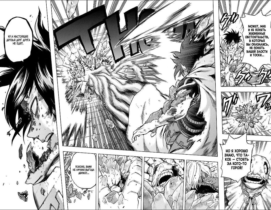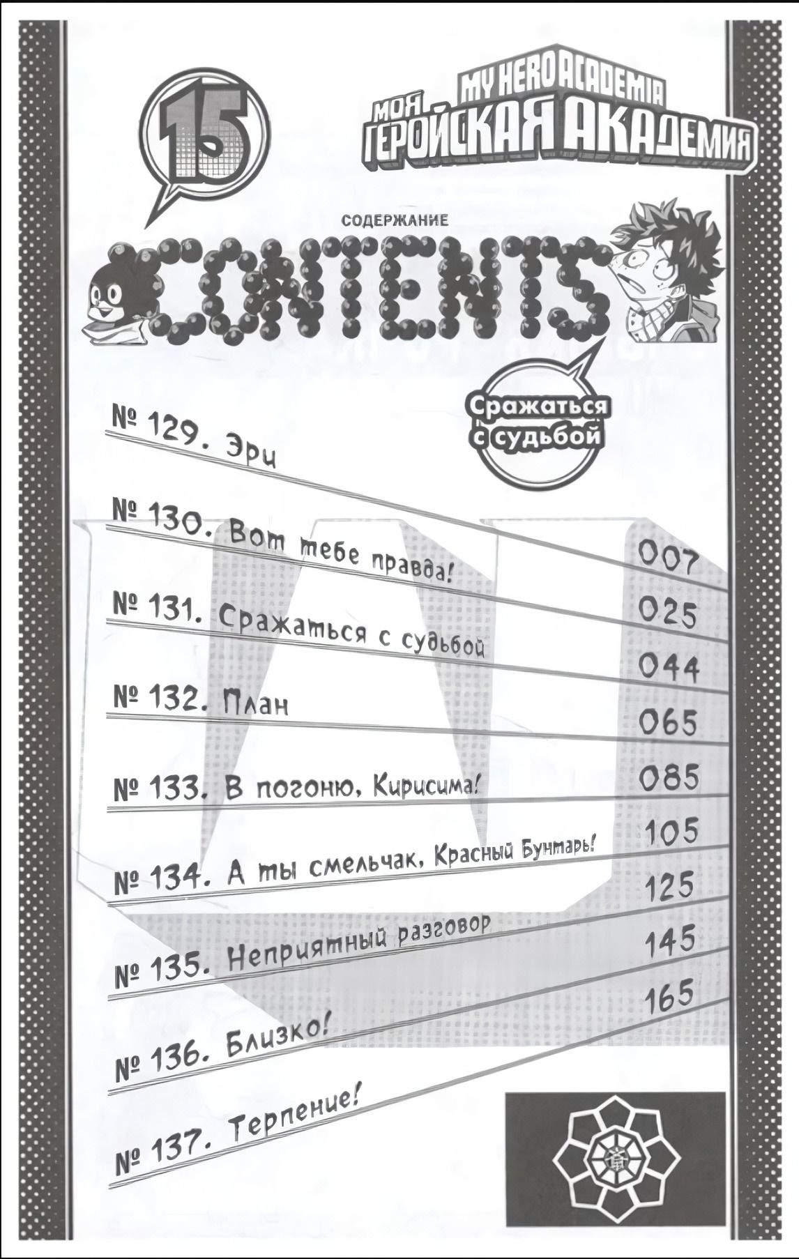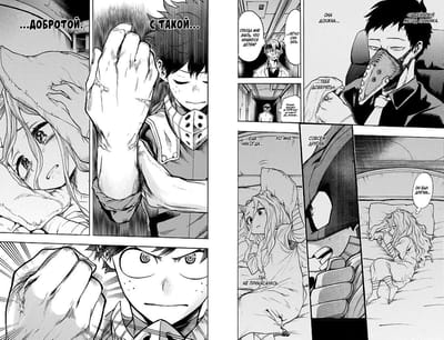 Trained at Nighteye's agency, Midoriya learns a terrible truth. It turns out that Sir has seen the Almighty's sad future - and it's about to come true. Meanwhile, a criminal gang led by Tisaki negotiates with the Sinister Alliance. The Yakuza have a plan to "destroy the foundations". For this purpose, in the dungeons of their headquarters, they develop a special substance with fad-damaging properties...
