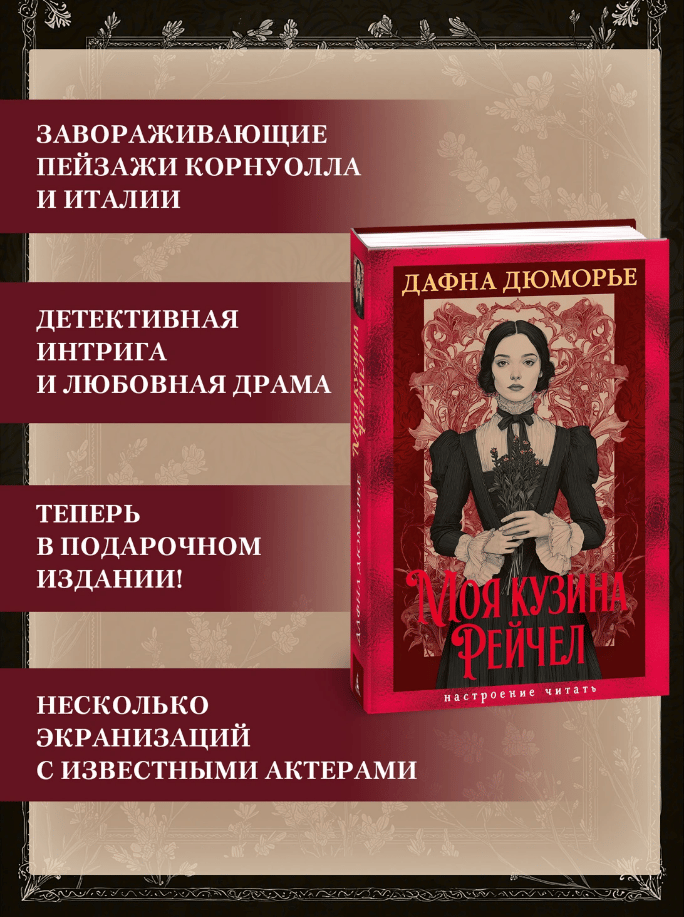 According to many critics and fans of English writer Daphne du Maurier (1907–1989), My Cousin Rachel is equal to, and in some ways superior to, the celebrated Rebecca. A detective story combines with an unusual love drama, set against the breathtaking landscapes of Cornwall and picturesque scenes of mid-19th-century Italy. The main character, the enigmatic and inscrutable Rachel, is one of the most memorable characters in English literature. With each twist, the reader becomes increasingly confused as to who is before them—the victim of unjust suspicion or a calculating schemer and murderer...