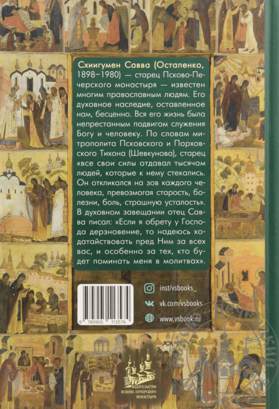 Schema-Hegumen Savva (Ostapenko) (1898-1980), the elder of the Pskov-Caves Monastery, is known to many Orthodox Christians. The spiritual legacy he left us is priceless. His entire life was a ceaseless struggle of service to God and man. According to Metropolitan Tikhon (Shevkunov) of Pskov and Porkhov, the elder "devoted all his strength to the thousands of people who flocked to him. He responded to the call of each person, overcoming old age, illness, pain, and terrible fatigue." In his last will and testament, Father Savva wrote: "If I find boldness in the Lord, I hope to intercede before Him for all of you, and especially for those who will remember me in prayer."