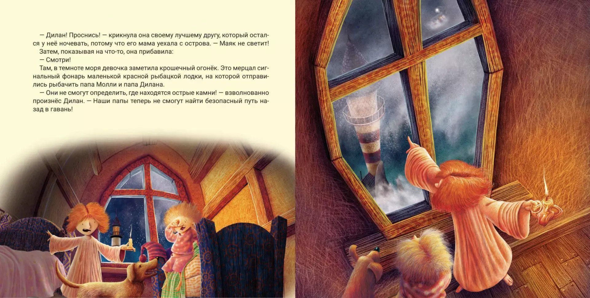 Molly wakes up in the middle of the night and realizes something is wrong. Something's wrong. The lighthouse outside her window has stopped shining! Her daddy has gone night fishing with his friends in a little red boat. Now without the light of the lighthouse, how will they find a safe way back to the harbor? Molly must try to get the lighthouse working again. And it must be done as soon as possible! "Molly and the Lighthouse" is the third book in the series of stories about a girl from a fishing island, after "Molly and the Stormy Sea" and "Molly and the Whale." It is a dramatic and touching story of courage, determination and love.