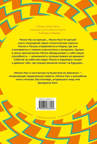 In the third book in the popular series, hypnotic orphan Molly and Petula travel to India, where they encounter new dangers and mysteries. However, in her adventures, Molly discovers a new ability - the ability to travel in time! Event after event leads Molly into a whirlpool of intrigue and ancient secrets, where every decision affects the future...