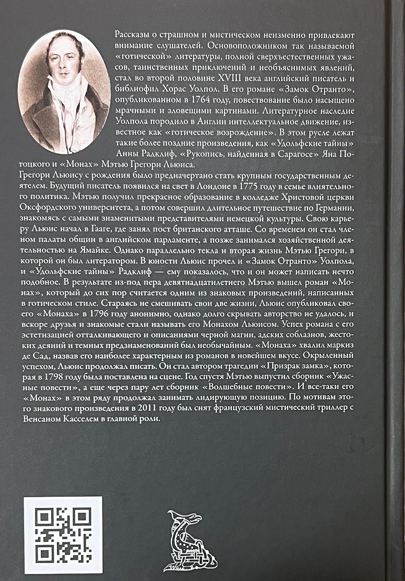 Tales of the macabre and mystical invariably attract the attention of listeners. The founder of the so-called "Gothic" literature, full of supernatural horrors, mysterious adventures and inexplicable phenomena, became in the second half of the XVIII century English writer and bibliophile Horace Walpole. In his novel "The Castle of Otranto", published in 1764, the narrative was saturated with gloomy and sinister pictures. Walpole's literary legacy spawned an intellectual movement in England known as the Gothic Revival. In this vein lay such later works as Anne Radcliffe's The Udolphic Mysteries, Jan Potocki's The Manuscript Found in Zaragoza, and Matthew Gregory Lewis's The Monk. Gregory Lewis was destined from birth to become a major statesman. The future writer was born in London in 1775 in the family of an influential politician. Matthew received an excellent education at Christ Church College, Oxford University, and then made a long journey through Germany, getting acquainted with the most famous representatives of German culture. Lewis began his career in The Hague, where he took up the post of British attaché. In time, he became a member of the House of Commons in the English Parliament, and later did business in Jamaica. However, Matthew Gregory's second life as a literary man flowed in parallel. In his youth, Lewis read both "The Castle of Otranto" Walpole, and "Udolph Mysteries" Radcliffe - it seemed to him that he could write something similar. As a result, from under the pen of nineteen-year-old Matthew came out of the novel "Monk", which is still considered one of the landmark works written in the Gothic style. Trying not to mix his two lives, Lewis published his "Monk" in 1796 anonymously, but it was not possible to hide the authorship for long, and soon friends and acquaintances began to call him Monk Lewis. The success of the novel with its aestheticization of the repulsive and descriptions of black magic, infernal temptations, cruel deeds and dark omens was extraordinary. "The Monk" was praised by the Marquis de Sade, calling it the most characteristic of novels in the latest taste. Flushed with success, Lewis continued to write. He authored the tragedy "The Ghost of the Castle", which was staged in 1798. A year later, Matthew published a collection of "Horrible Tales", and a couple more years later a collection of "Magical Tales". Still, his "The Monk" continued to take the lead in this series. Based on this landmark work in 2011, a French mystical thriller with Vincent Cassel in the title role was filmed.