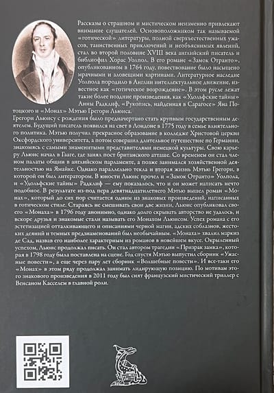 Written in the "gothic" style of the novel "The Monk" - the most famous work of the famous English novelist, playwright, poet and translator Matthew Gregory Lewis (1775-1818). The reader's attention is drawn to the descriptions of the temptations of hell, the trial of the Inquisition, and the bargain with the devil himself. Actions in the novel dynamically develop against the background of ancient Spanish monasteries, temples, castles, crypts and inquisition dungeons. The text is translated by Irina Gavrilovna Gurova. The book is decorated with drawings taken from the first illustrated edition of the novel, published in London in 1859 by George Purkess.