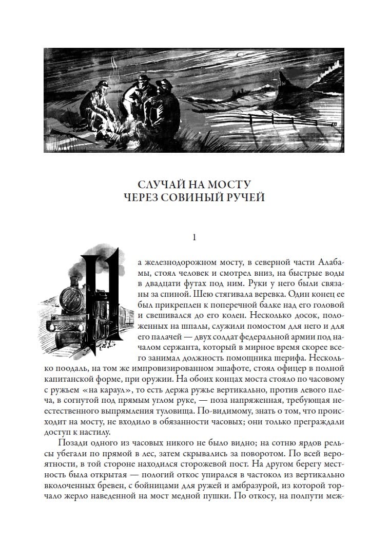 Ambrose Bierce was counted among the classics of American literature in the middle of the twentieth century; by that time the writer was long gone. He probably would have been surprised to learn that his fame brought him gloomy and imbued with a cynical view of life stories and novels in the style of "gothic prose". About a dozen of them have entered the golden fund of American classics. Ambrose wrote them rather for a narrow circle of admirers than for the general public, which Beers was known primarily as a talented journalist, hard scourged in the late XIX century vices of American society. The remnants of youthful romanticism Ambrose lost during the Civil War, which he came from a poor, large farming family, went to volunteer. Bierce went through all the major battles, became convinced of the senselessness of sacrifice and settled in San Francisco. To return to the former casual earnings did not allow pride - Beers retired as an officer. Find his own, independent way in life helped talent writer. The father of the future writer had a good library - thanks to her Ambrose got acquainted with the literary classics. Later he contributed to it, becoming the author of laconic innovative prose, which had a huge impact on the development of American "dark literature". Bierce's follower on this path was the American writer Howard Phillips Lovecraft, whose works are also full of horror, mysticism and fatalism. Bierce's story "The Monk and the Executioner's Daughter", with which this collection begins, is imbued with them. It is considered one of the pinnacles of "gothic literature". At the end of his life, the writer, who possessed an unsettled and independent character, in a sense became one of his heroes-fatalists. Bierce did not want to meet with infirm old age. Having reached the age of seventy years, he crossed the border with the revolutionary flames of Mexico. In its flames, he perished without a trace. Probably not for nothing, one of his stories Beers called "Missing in Action". The book is illustrated with drawings by contemporary St. Petersburg artist Tatiana Kosach. She graduated from the History Department of St. Petersburg State University and is a specialist in the art of the Middle Ages. Her iconographic and graphic works can be found in private collections of art lovers in Russia, USA, Italy and France. In the series "Library of World Literature" her illustrations decorate the novels "American Tragedy", "The Financier", "The Financier", "The Tyrant" and "The American Tragedy". , "The Financier", "Titan", "Stoic" by Theodore Dreiser, "Doctor Zhivago" by Boris Pasternak and "The White Guard" by Mikhail Bulgakov.