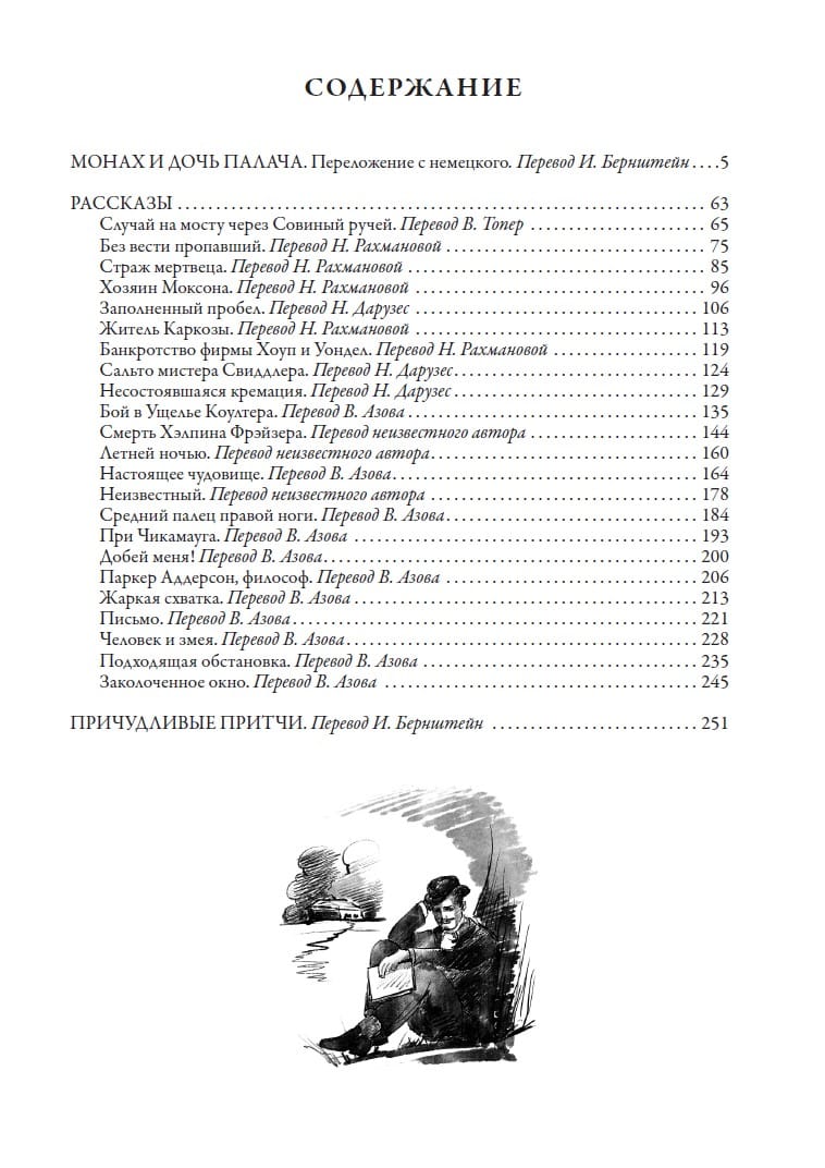 The collection includes various works by Ambrose Bierce (1842-1914), who in the United States deservedly earned his fame as a master of "gothic prose". In his texts, dark and mystical, Bierce tried to bring the description of the terrible to the possible limit. His story "The Monk and the Executioner's Daughter," translated by I. Bernstein, is a free retelling of the novel "The Monk of Berchtesgaden" by the German writer R. Voss. In addition to the story, this edition includes more than seven dozen short parables by Beers, as well as twenty-three stories by the writer. The edition is accompanied by drawings and lettering by artist Tatiana Kosach.