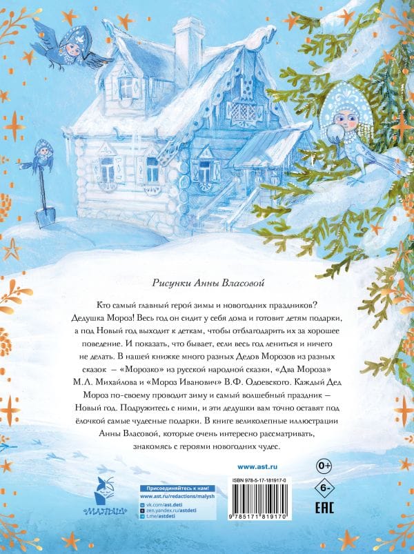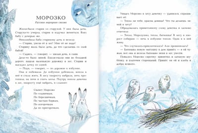 The book "Morozko. Winter Tales" includes three classic fairy tales about winter's most important hero, Father Frost: "Morozko," "Two Frosts," and "Moroz Ivanovich." In each story, Father Frost appears as a wise, kind, and fair guardian of the winter forest and New Year's miracles. Becoming friends with him is not at all difficult; you just need to be diligent, help your neighbors, and be responsible for your actions, and then Father Frost will become your friend and helper. But if you're lazy and do nothing, Father Frost might freeze you to death!
