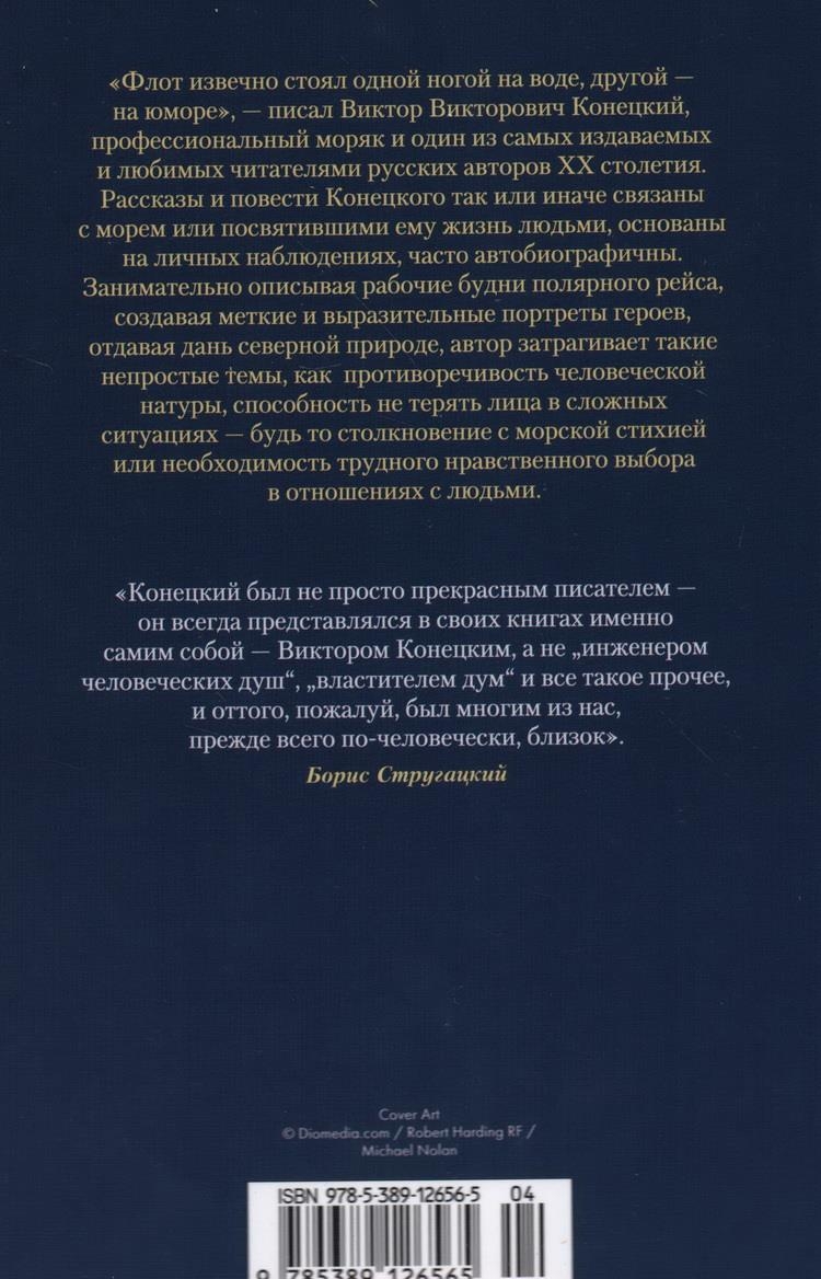 "The navy has always had one foot on the water and the other on humor," wrote Viktor Viktorovich Konetsky, a professional sailor and one of the most published and beloved Russian authors of the 20th century. Konetsky's stories and novellas are somehow connected to the sea or the people who dedicated their lives to it, based on personal observations and often autobiographical. Engagingly describing the daily routine of a polar voyage, creating apt and expressive portraits of his characters, and paying tribute to the northern environment, the author touches on such complex themes as the contradictions of human nature and the ability to maintain composure in difficult situations—whether encounters with the elements or the need to make difficult moral choices in relationships.