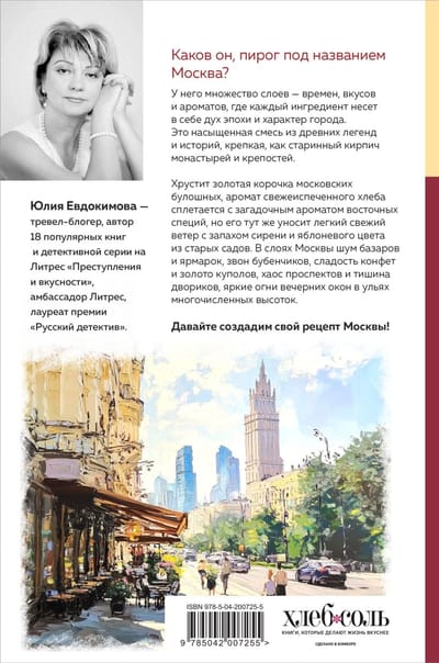 A new book from a renowned author whose print run exceeds 50,000 copies! And now about Moscow! A city so seemingly familiar to everyone—both those who live there and those who visit. But no! Yulia will show you her Moscow, with winding streets, sometimes climbing hills, sometimes cascading down to the Moskva River. With towers and gardens, churches and courtyards, restaurants and high-rises. And with the myriad stories and legends that fill Moscow. And an incredible number of recipes, both native to Moscow and imported from Europe and Asia. You'll be surprised, your perspective will be fresh, and your appetite will be whetted! Allow yourself to see Moscow in a new way.