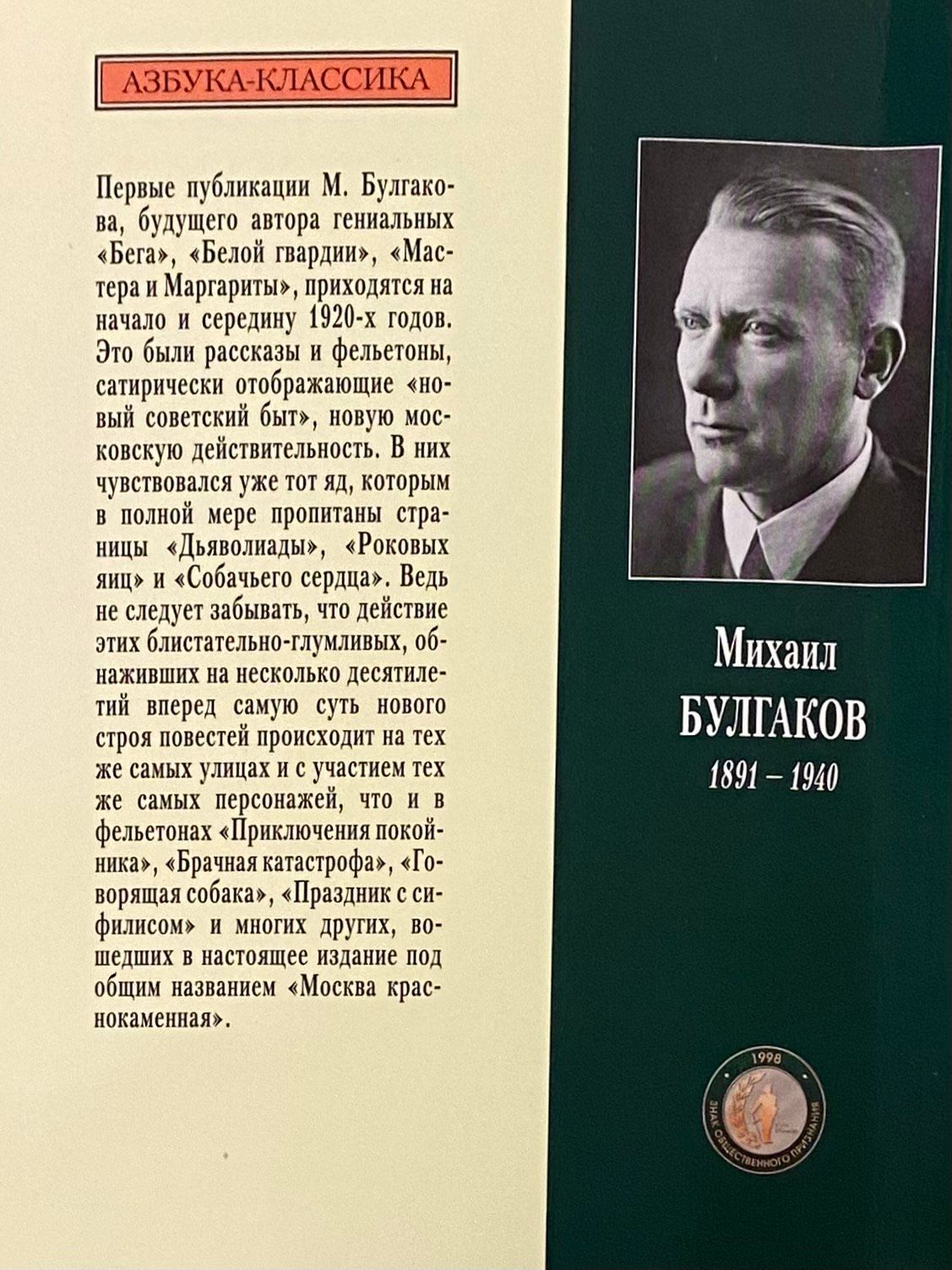 The first publications of M. Bulgakov, the future author of the brilliant "Flight", "The White Guard", "The Master and Margarita", date back to the early and mid-1920s. These were stories and feuilletons, satirically reflecting the "new Soviet way of life", the new Moscow reality... They already felt the poison that fully permeated the pages of "The Devil's Life", "Fatal Eggs" and "Heart of a Dog". After all, we should not forget that the action of these brilliantly mocking stories, which laid bare the very essence of the new order for several decades to come, takes place on the same streets and with the participation of the same characters as in the feuilletons "The Adventures of a Dead Man", "Marriage Disaster", "The Talking Dog", "A Holiday with Syphilis" and many others, included in this publication under the general title "Red-Stone Moscow".