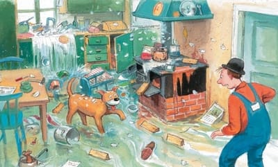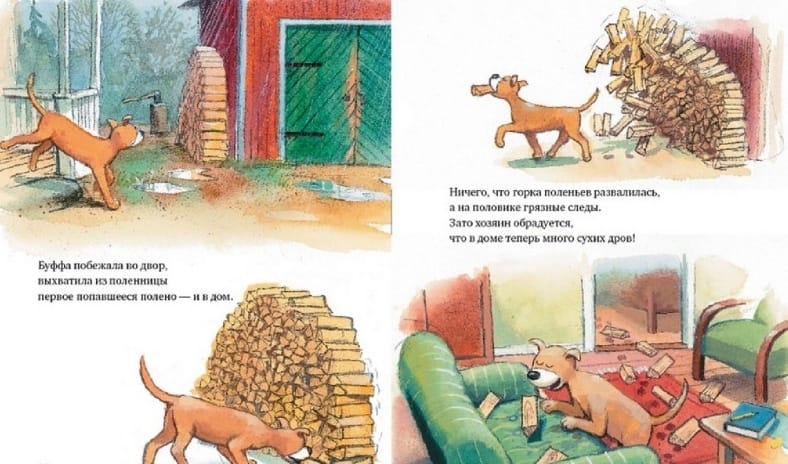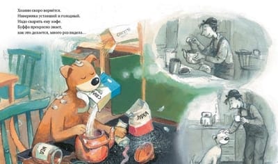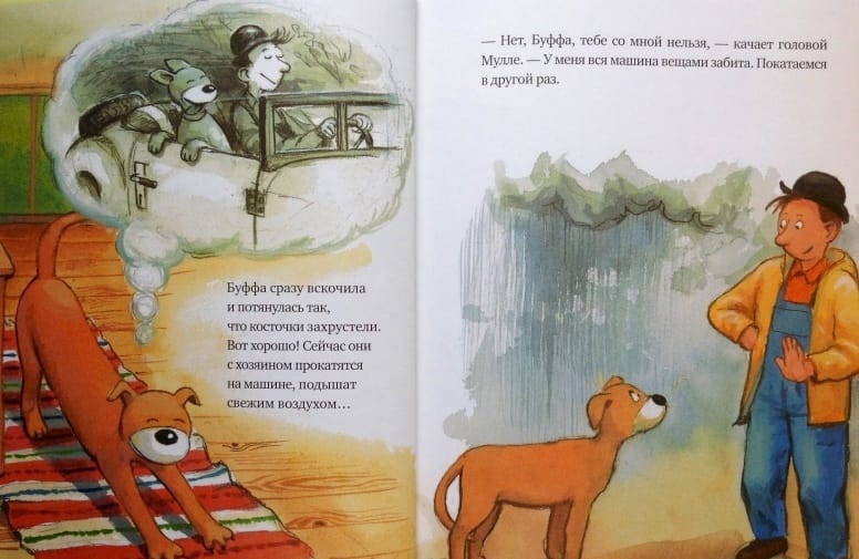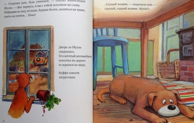 "Mulle Mek and Buffa" is the fifth book in the series "Mulle Mek - the skillful man". Once Mullet went to town on business, and his faithful dog Buffa stayed to guard the house. But Buffa got bored, and she decided to help Mullet in the household: trying to imitate him in everything, she washed the dishes, brought firewood, made the bed. She tried very hard to do everything exactly like her master, but for some reason he, having returned from the city, was not happy and was not in a hurry to praise his "helper". After all, now the kitchen is knee-deep in water, the yard is scattered, and feathers from torn pillows are flying in the bedroom. But Mullet was not angry for long, because he guessed that Buffa wanted to help him. The series "Mulle Mek - skillful man" is a classic of modern Swedish literature for children. First of all, it is addressed to the youngest readers who make their first steps in getting acquainted with technology, are interested in the device of various mechanisms and certainly want to know how what works. The stories about the master Mull and his dog Buffet have been very popular in Scandinavia for two decades, and Mull himself is loved no less than the famous heroes of Astrid Lindgren's fairy tales - for his ingenuity, wit and unchanging optimism.