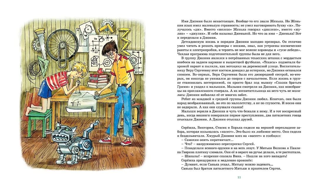 Vladislav Krapivin understood children with remarkable sensitivity and knew how to connect with them. With each work, he sought to prolong childhood for himself and his readers. Krapivin's heroes are rebels and defenders, distinguished by a unique worldview, sincerity, and a heightened sense of justice, and they are constantly on the lookout for adventure. Such is Zhenya Vorobyov, nicknamed Johnny, from the "Musketeer and the Fairy" series of stories. These stories tell of a difficult but happy childhood, with its contradictions, joyful games, battles with enemies, as well as growing up and learning about life.