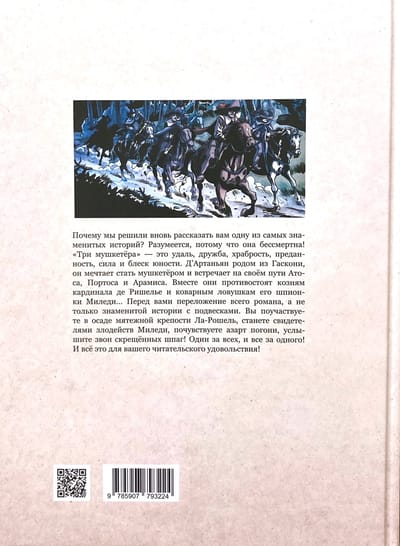 Why did we decide to tell you one of the most famous stories again? Of course, because it is immortal! "The Three Musketeers" is daring, friendship, bravery, loyalty, strength and the brilliance of youth. D'Artagnan is from Gascony, he dreams of becoming a musketeer and meets Athos, Porthos and Aramis on his way. Together they resist the intrigues of Cardinal de Richelieu and the insidious traps of his spy Milady... Before you is a retelling of the entire novel, and not just the famous story with the pendants. You will take part in the siege of the rebellious fortress of La Rochelle, witness Milady's atrocities, feel the excitement of the chase, hear the ringing of crossed swords! One for all, and all for one! And all this for your reading pleasure.
