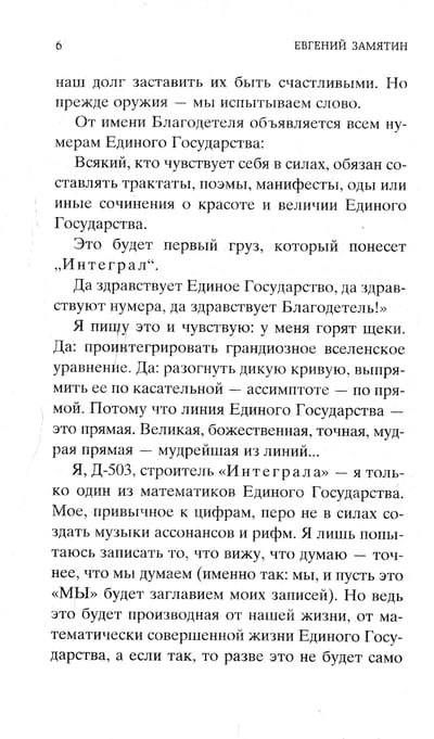 The hero of the novel "We" - a mathematician and engineer - lives in a giant city-state, separated from the outside world by a wall. It seems to him that everything here is organized correctly and reasonably: people have numbers instead of names, wear the same clothes, their lives are strictly regulated. But gradually the hero begins to realize that in this perfectly arranged society there is no place for freedom and love. The novel "We", written in 1921, was considered a satire on the communist system; only in 1988 Russian readers had the opportunity to get acquainted with the main work of Yevgeny Zamyatin.