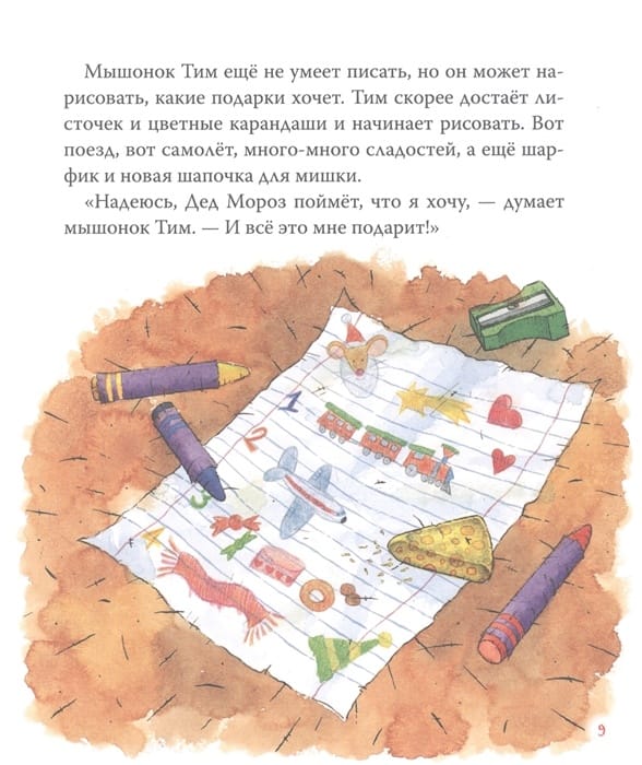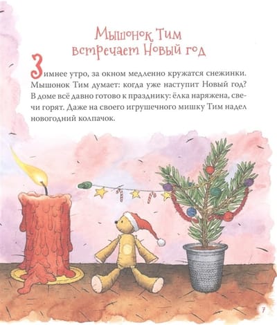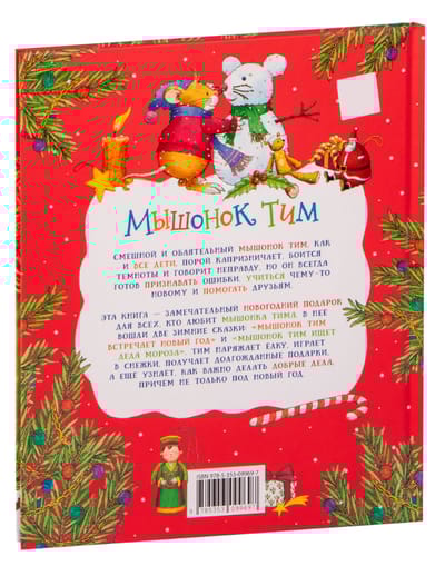 The book includes two New Year's tales: "Tim the Mouse Meets the New Year" and "Tim the Mouse Seeks Santa Claus". In these stories Tim not only dresses up the Christmas tree, plays snowballs and gets long-awaited gifts, but also realizes how important it is to do good deeds and not only at New Year's. A series of books about a funny and charming mouse Tim will help kids understand, recognize and name their feelings, learn to communicate with peers and cope with difficult situations.