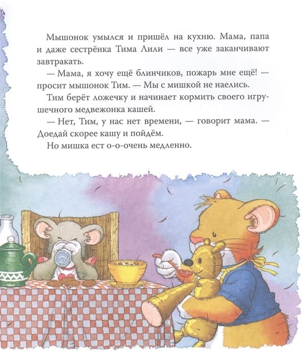 IN THIS BOOK: This morning, Tim the mouse didn't get out of his warm bed right away. He wasn't in a hurry to finish his breakfast either. And after eating, he also started playing with his toys... But they're waiting for him at the kindergarten! They have a field trip today. Why is it so important to do everything on time? Soon Tim the mouse will learn this and he will never be late again.