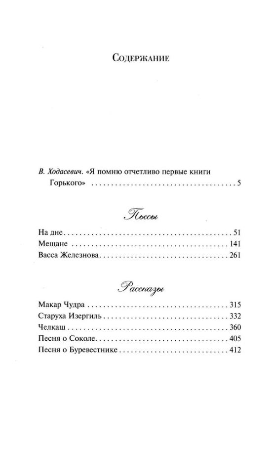 The book also includes the plays "The Philistines" and "Vassa Zheleznova," the short stories "Makar Chudra," "The Old Woman Izergil," and "Chelkash," and the prose poems "Song of the Falcon" and "Song of the Stormy Petrel."