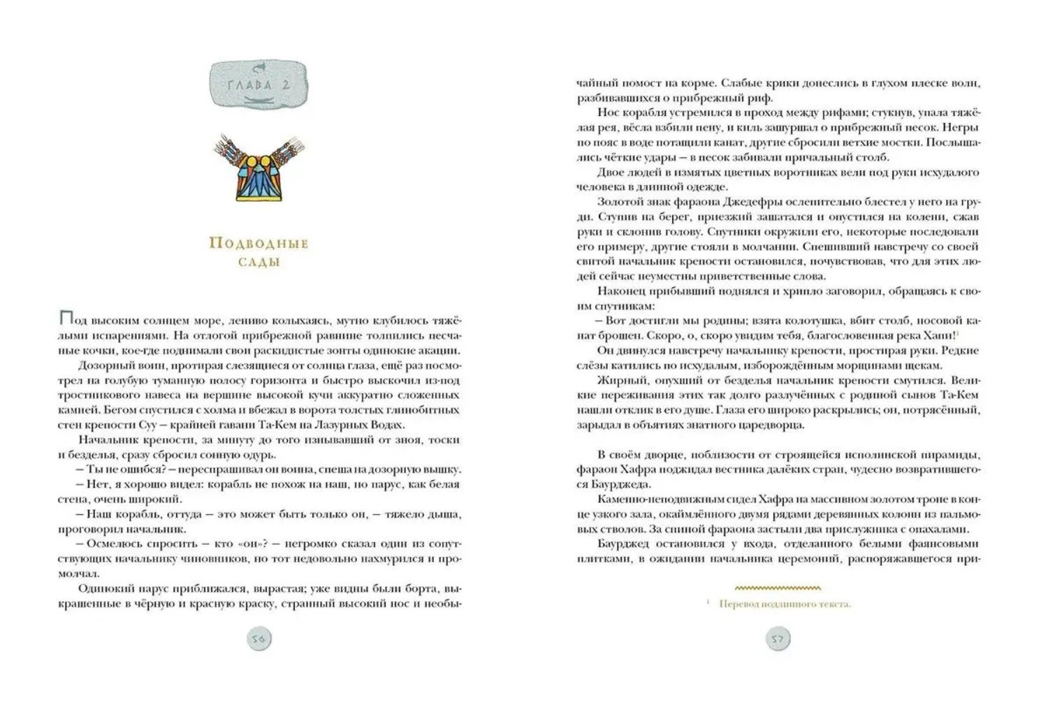 Would you like to embark on a long and dangerous journey through amazing Africa? Delve into the secrets and mysteries of Ancient Egypt? Outstanding science fiction writer Ivan Antonovich Efremov takes his readers deep into time, inviting them to experience exciting and captivating adventures alongside his characters. The great Pharaoh Djedefra, eager to explore the vastness of the world, sent a sea expedition south under the command of his treasurer, Baur-djed, to search for the distant and mysterious land of Punt. And the young sculptor Pandion, captivated by the beauty of art, leaves his beloved behind and sets off for Crete to explore the island's ancient culture. The young man endures severe trials and hardships, and soon his only thought becomes the desire to return home. Oleg Pakhomov's illustrations help the reader fully immerse themselves in the long-gone era of the Egyptian pharaohs.