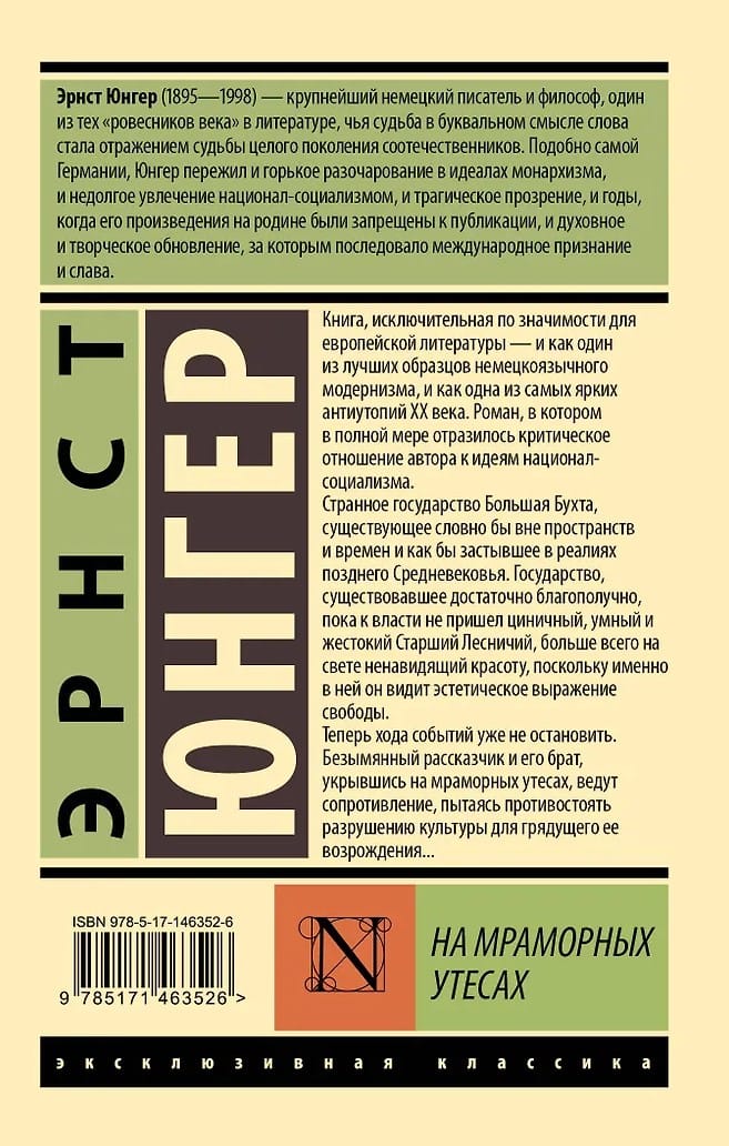 A book of exceptional significance for European literature—both as one of the finest examples of German-language modernism and as one of the most striking dystopias of the 20th century. A novel that fully reflects the author's critical stance toward the ideas of National Socialism. The strange state of Big Bay, seemingly existing outside of space and time, seemingly frozen in the realities of the late Middle Ages. A state that existed relatively prosperously until the cynical, clever, and cruel Head Forester came to power. He hates beauty more than anything else, for he sees it as the aesthetic expression of freedom. Now the course of events can no longer be stopped. The nameless narrator and his brother, sheltered on the marble cliffs, lead a resistance, attempting to resist the destruction of culture for its eventual rebirth...